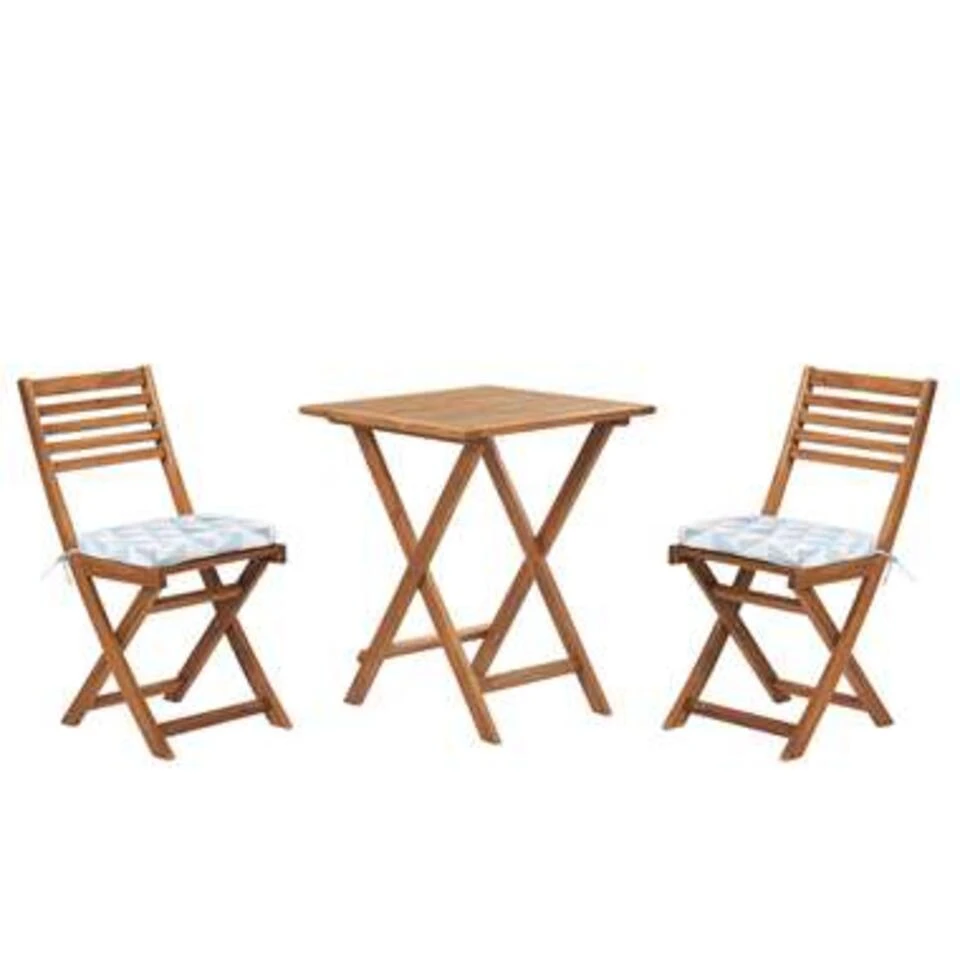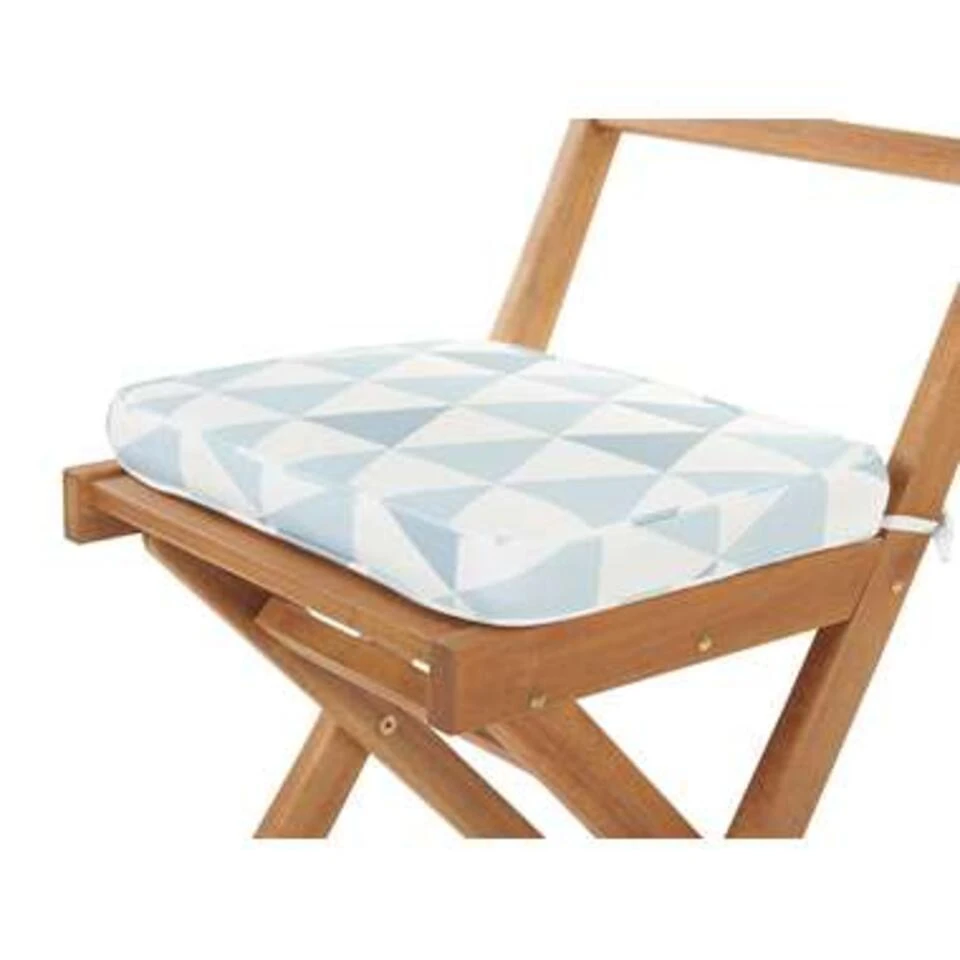 Handige balkon-set bestaande uit 2 inklapbare stoelen, tafel en kussens met een prachtig geometrisch patroon in blauw. Een charmante bistroset is een prachtige toevoeging aan een tuin in nautische of landelijke stijl, vervaardigd uit massief acaciahout. De opvouwbare set is eenvoudig op te zetten en biedt moeiteloze opslag tijdens het laagseizoen. De bistroset is zonder meer een uitstekend tuinmeubelstuk, waarmee je jarenlang de heerlijkste ervaringen zult beleven. De stoelen worden geleverd met bijpassende kussens, een zalige plek om te ontspannen tijdens zonnige middagen.