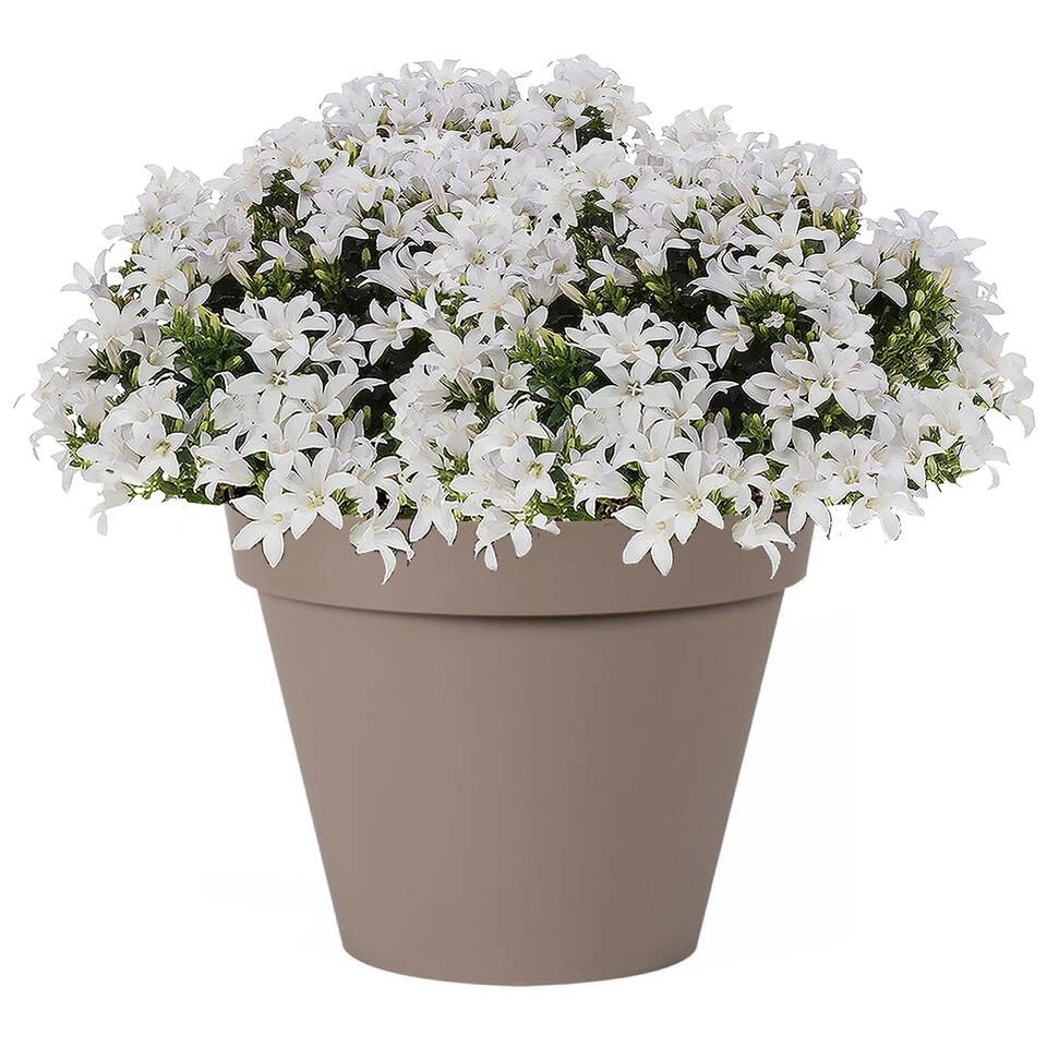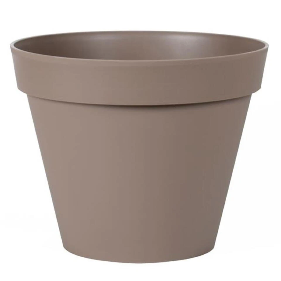 Bloempot Toscane. De plantenpot is geschikt voor binnen- en buitenshuis. Doordat de pot voorgeboord is aan de onderkant kan het water makkelijk weglopen. Afmetingen: diameter 30 en hoogte 26 cm. Inhoud: 10 liter. Materiaal: kunststof. Kleur: taupe.