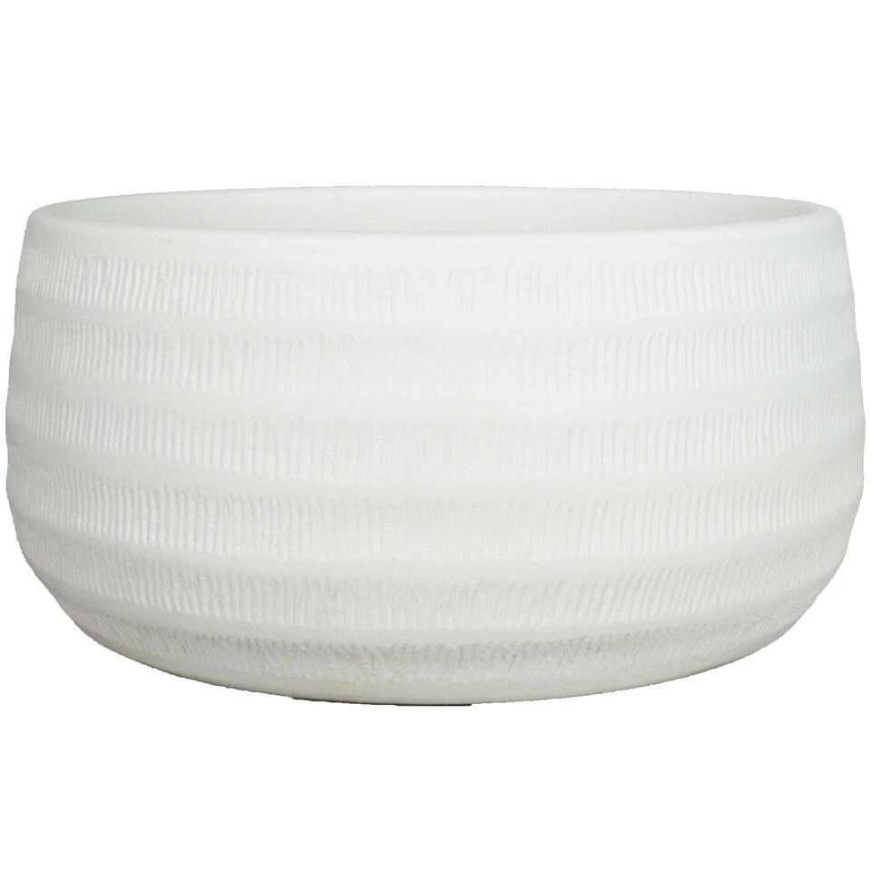 Bloempot schaal in de kleur mat wit gemaakt van keramiek voor een kamerplant – H14 x D29 cm. Deze ronde bloempot uit de Lena serie met geribbelde afwerking is een bloempot/plantenpot basic voor elke huiskamer. Gemaakt van terracotta/keramiek. Binnen gebruik. Diameter: 29 cm. Hoogte: 14 cm.