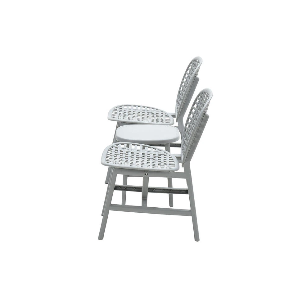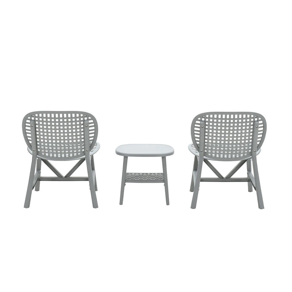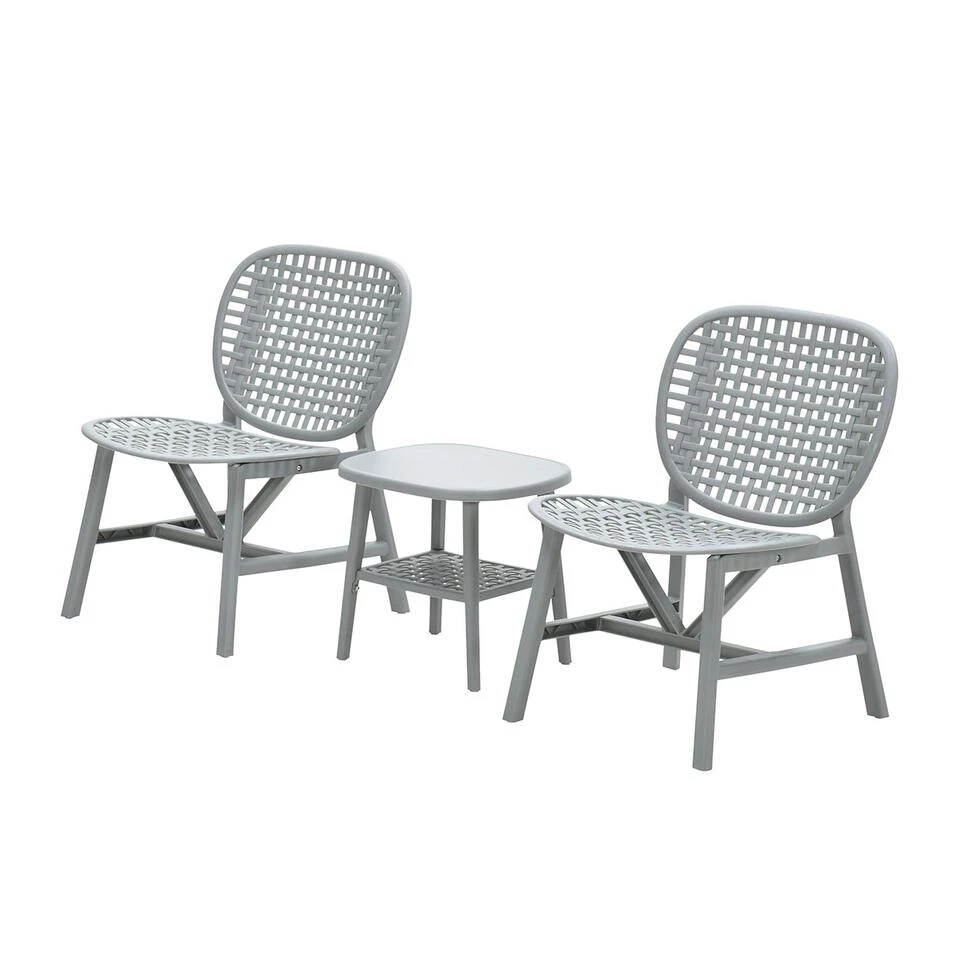 Kunststof is eenvoudig schoon te maken door een sopje van groene zeep en een katoenen doek te gebruiken. Daarna even goed afspoelen en jouw kunststof is weer schoon. De balkonset bestaat uit twee tuinstoelen en een tuintafel.