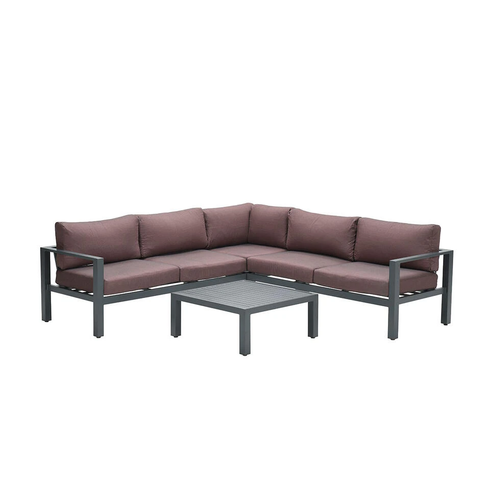 De Fora loungeset 4-delig is vervaardigd uit een aluminium frame met een donker grijze poedercoating. Deze stevige coating zorgt ervoor dat het frame beschermt is tegen krassen en stoten. Aluminium is licht van gewicht en daardoor eenvoudig te verplaatsen. Het frame heeft prachtige afgeronde armleuningen en heeft verder een strak design. Aluminium heeft als voordeel dat het onderhoudsvrij is.