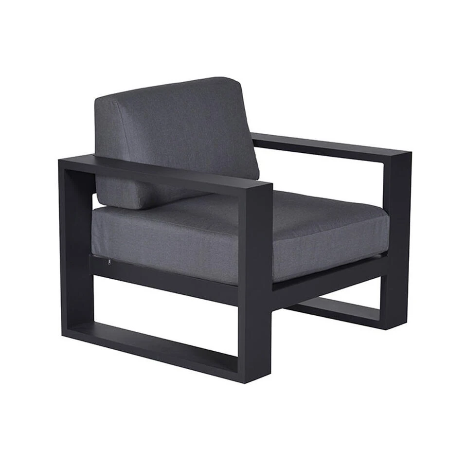 De afmeting van de lounge fauteuil: B 85 x D 95,5 x H 65 cm. Gemaakt van aluminium met een poedercoating in de kleur carbon black en luxe polyester lounge kussens in de kleur antraciet. Een uitgebreide collectie loungestoelen vind je binnen de categorie tuinmeubelen. Tuinmeubelen van verschillende mooie merken.