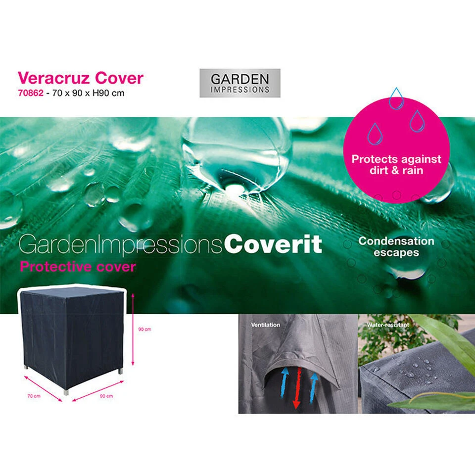 Ben je op zoek naar een beschermhoes voor jouw Santa Rosa relax fauteuil? Deze prettige beschermhoes van kwaliteitsmerk Garden Impressions zorgt ervoor dat je langer plezier zal hebben van jouw tuinmeubelen. Om de levensduur van je tuinmeubelen te verlengen, raden wij aan om deze af te dekken in de wintermaanden. De beschermhoezen van Garden Impressions zijn gemaakt van PVC met een ademende coating. Deze coating zorgt ervoor dat hoes waterbestendig is. De hoes is niet volledig waterdicht, maar waterafstotend. Het is een flexibele ademende coating, waardoor de hoes in de wintermaanden ook nog flexibel blijft. Doordat de hoes niet volledig waterdicht is, is aan te raden om een afstand te creëren tussen het tuinmeubel en de hoes. Het water kan er dan gemakkelijker afstromen en het tuinmeubel kan niet verstikken. De beschermhoes is voorzien van ventilatie driehoeken zodat het tuinmeubel kan ademen. De hoes kan gemakkelijk om de Santa Rosa stoel worden bevestigd. Op alle hoeken zit onderaan een elastieken band om de hoes strak te houden. We raden je aan om de kussen niet onder de hoes te laten liggen. Mocht de kussens al nat zijn geworden, is dat niet erg maar zorg er wel voor dat ze droog worden opgeborgen. Beschermhoes voor de Santa Rosa stoel met afmeting 70x90xH90 cm.