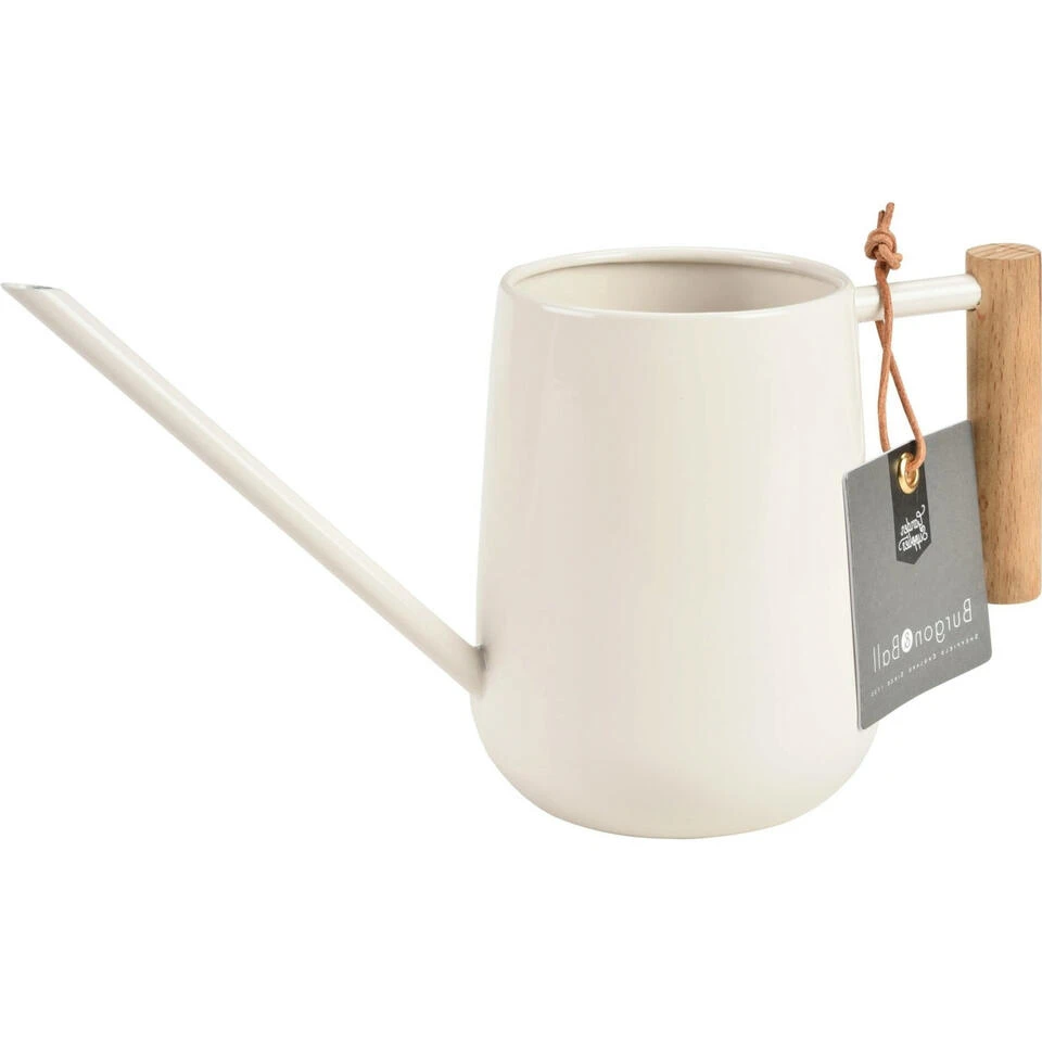 Metalen gieter creme wit 0,7 liter met handvat van FSC beukenhout. Deze gieter is super handig voor in het huis om plantjes water te geven. Er past een hoeveelheid van 0,7 liter water erin. Afmeting: ca. 25 x 12 x 10 cm. Materiaal: Metaal/hout.