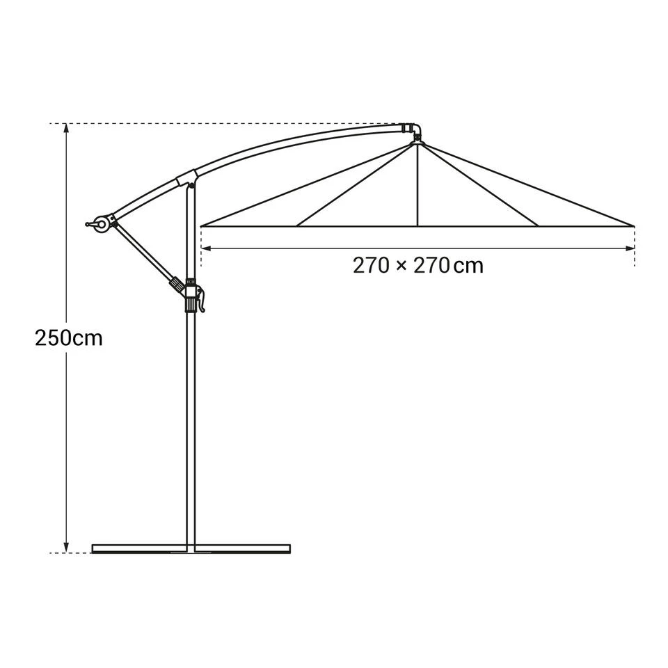 – Paraplu: L 2.7 × B 2.7 × H 2.5m
