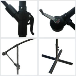 Wat de accessoires betreft, is het noodzakelijk ballast of opvulbare platen toe te voegen om ervoor te zorgen dat het op zijn plaats blijft. Happy Garden adviseert u ook om uw excentrieke parasol te beschermen met een hoes wanneer u hem niet gebruikt, zodat hij beschermd is tegen slecht weer.