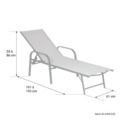 – Zonnebanken: L 161 tot 193 × B 61 × H 33 tot 86 cm