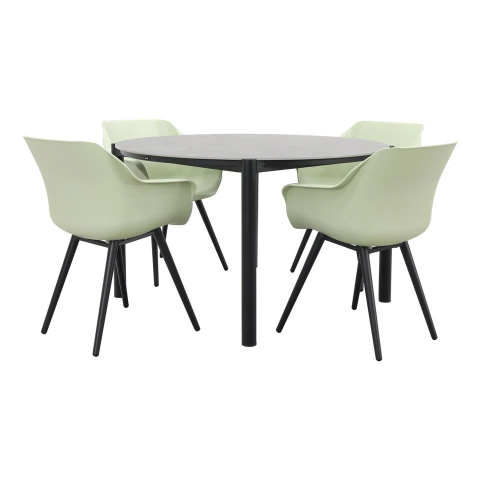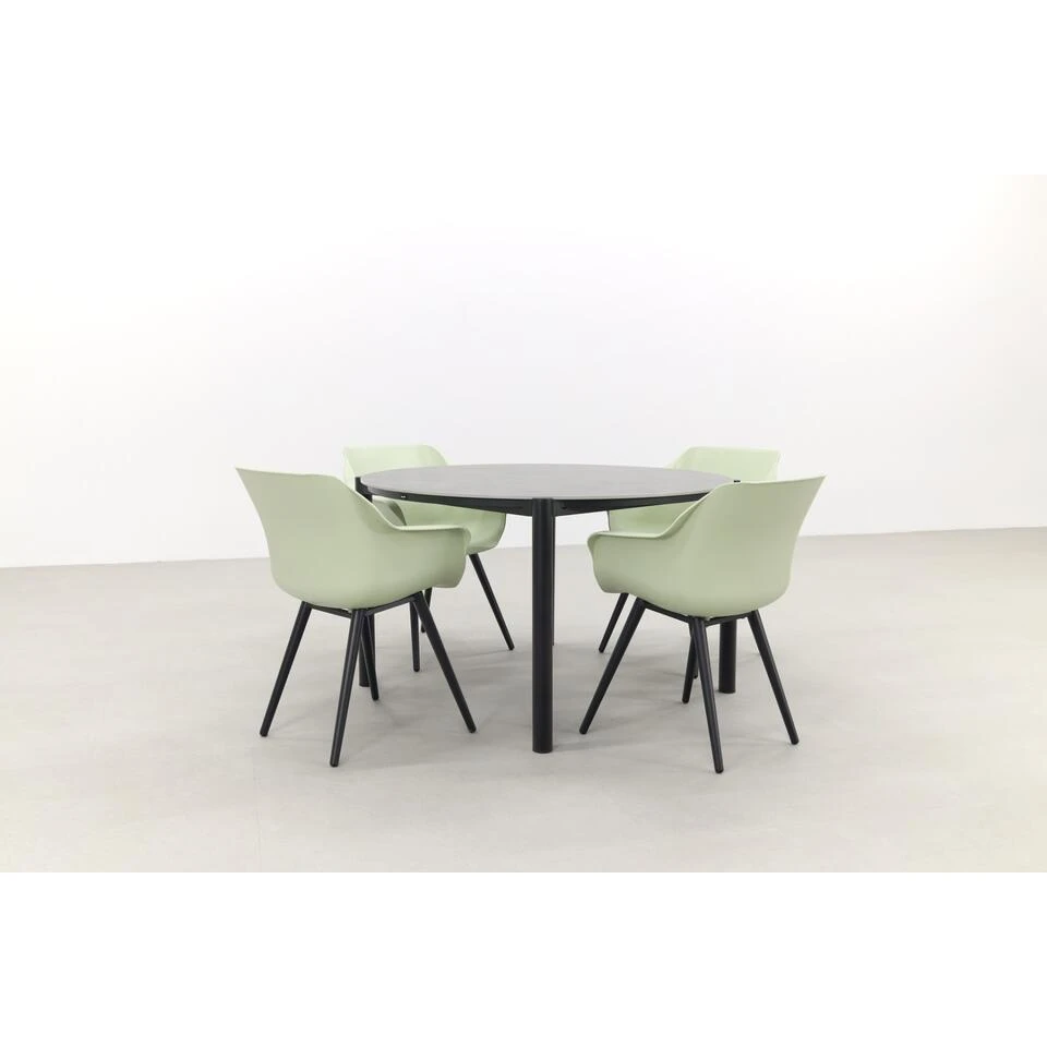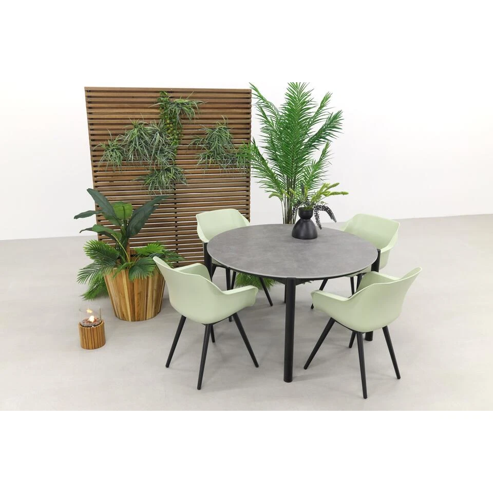 Moderne tuinset met een chique uitstraling. De Arezzo ronde tuintafel heeft een stijlvol frame van aluminium met een zwarte coating. Op dit onderstel rust het ceramic tafelblad. De ronde vormgeving van de Arezzo tuintafel geeft een unieke uitstraling aan je terras, helemaal in combinatie met de Hartman Sophie tuinstoelen. Deze hippe tuinstoelen maken de set écht compleet. De voorgevormde zitkuip geven je rug optimale ondersteuning. Een lange avond borrelen of dineren is dan ook geen probleem.