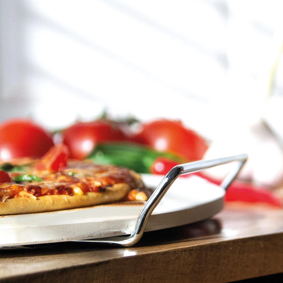 - Jouw pizza wordt door de pizzasteen gelijkmatig verwarmd.