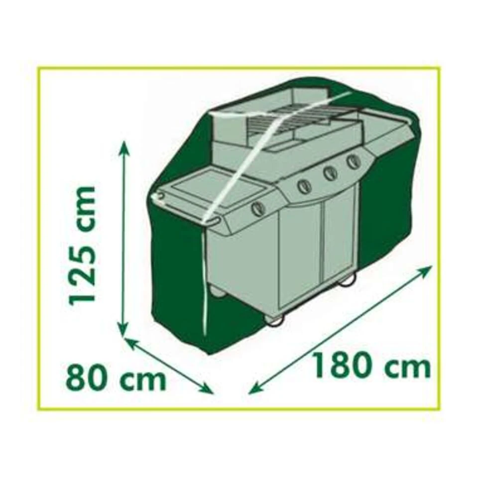 Afdekhoezen/beschermhoezen gas barbecue/bbq 180 x 80 x 125 cm. Grijze UV-bestendige afdekhoes/beschermhoes voor een gas barbecue/bbq. Deze hoezen beschermen uw gas barbecue/bbq tegen Uv-stralen, regen, hagel, sneeuw en wind! Ook geschikt voor in de winter. De hoezen hebben ogen/ringen met een nylondraad aan de onderkant. Afmeting: ca 180 x 80 x 125 cm. Materiaal: polyethyleen (kunststof). Barbecuehoes/bbq bescherming.