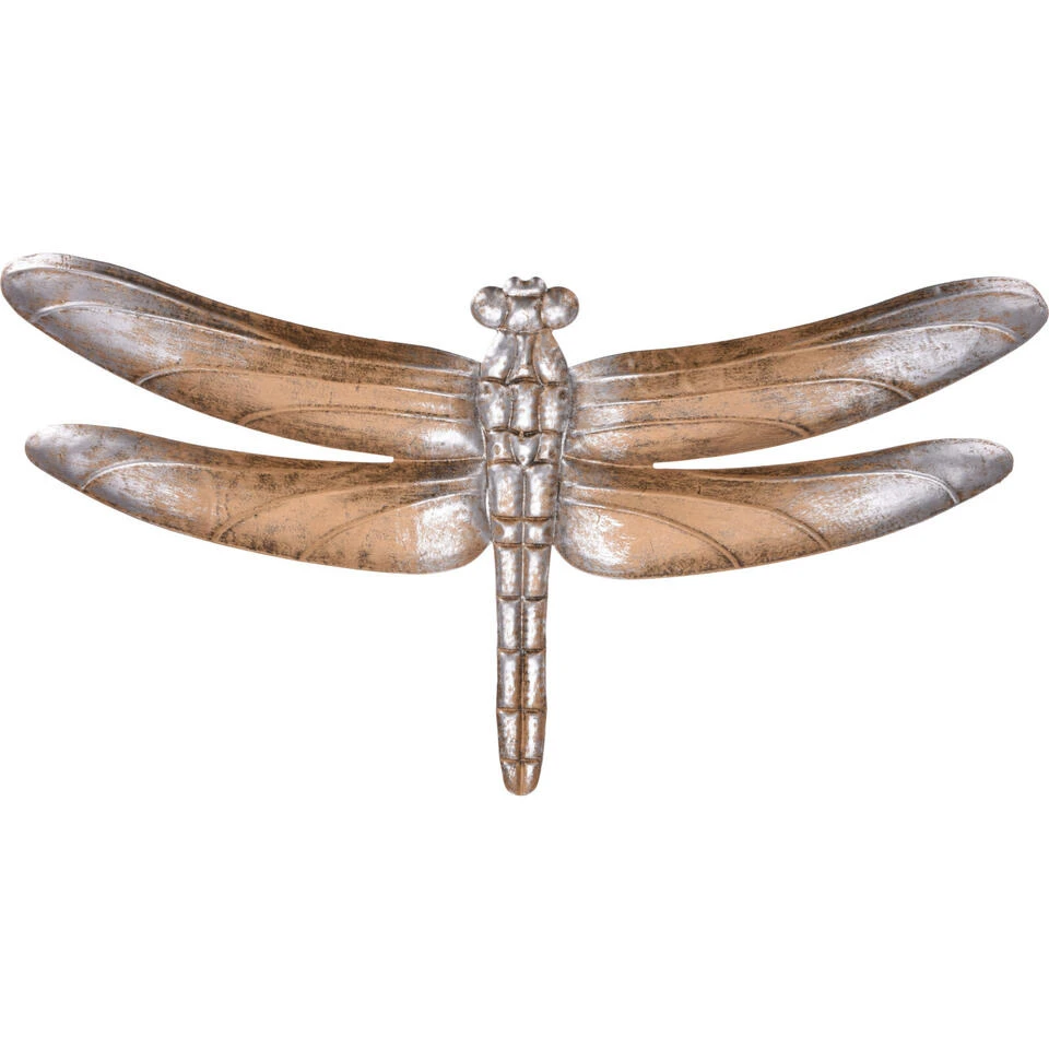 Metalen lichtbruine/bronzen tuinlibelle decoratie. U kunt de libelle bevestigen aan de wand/muur of schutting (bevestigingsmateriaal niet inbegrepen). Materiaal: metaal. Formaat libelle: 49 x 33 cm. Kleur: lichtbruin/brons. Geschikt voor zowel gebruik binnenshuis als buitenshuis. Kan verkleuren door langdurige blootstelling aan de zon. Metalen libelle dierenbeelden hangdecoraties wanddecoratie/tuinversiering.