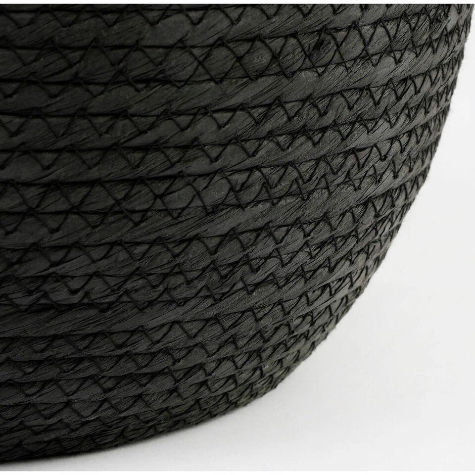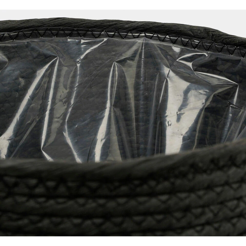 Naturel zwart kleur rotan planten pot mand van gedraaid jute/touw/riet/zeegras van 19 cm hoogte en 22 cm diameter(buitenzijde). Voor de binnenmaat trek je 3 cm af. Mooie rotan jute manden/mandjes voor bloemen, bloemstukjes en planten met plastic aan de binnenkant zodat het water er niet door gaat. De ronde rieten mand heeft geen gaatjes aan de onderkant.