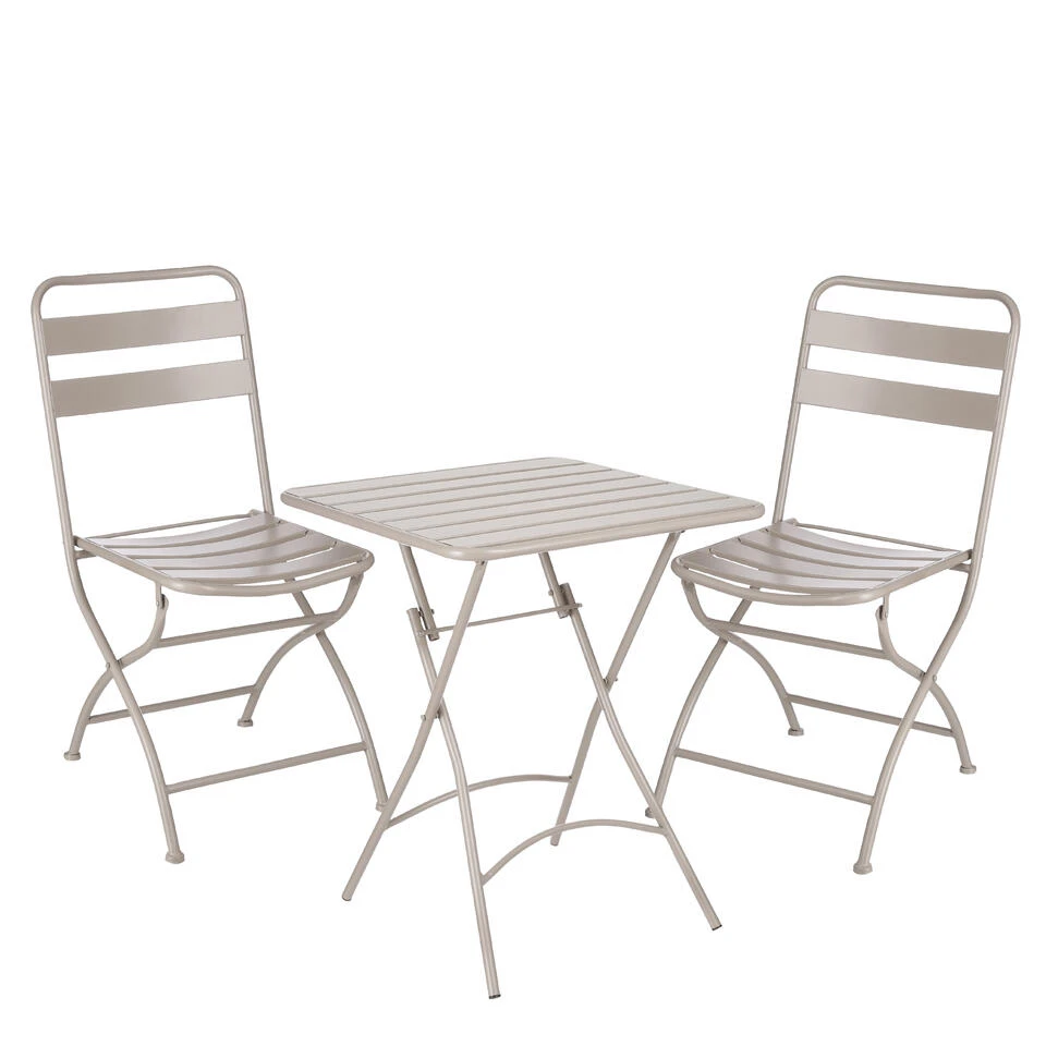 Met de Evita bistro set uit de collectie van Mica Decorations creëer je in een mum van tijd een gezellig zitje in de tuin met een moderne uitstraling. De set is gemaakt van metaal en heeft een bruine kleur. Door de strakke afwerking is hij met van alles te combineren en weet hij op elk terras wel een plekje te vinden. De bistrostoelen en bistrotafel zijn inklapbaar, waardoor je ze met visite snel tevoorschijn kan halen. Of gebruik hem heel de zomer zelf en berg ze daarna gemakkelijk op in de schuur. De Evita bistro set bestaat uit twee bistrostoelen met een afmeting van L44 x B56,5 x H87 cm en een bistrotafel met een afmeting van L60 x B60 x H74,5 cm.