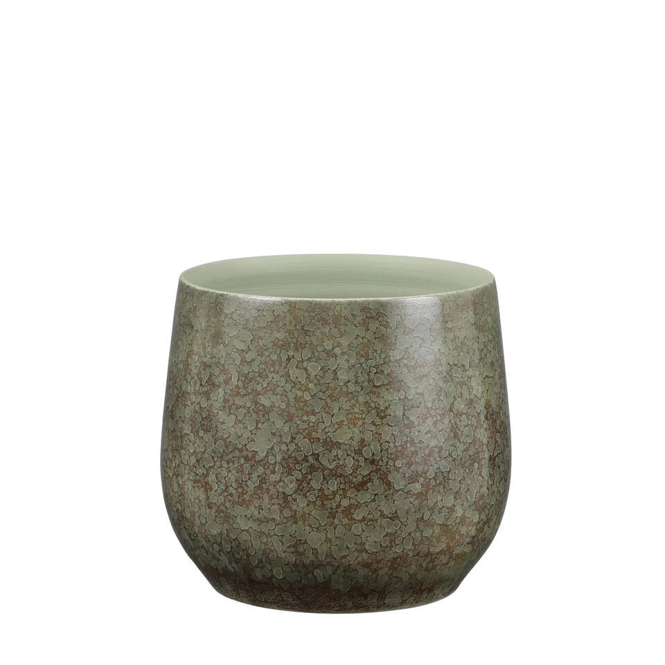 Plantenpot/bloempot van terracotta in de kleur groen shadow met diameter 29 cm en hoogte 26 cm. Stijlvolle bloempotten voor binnen gebruik met een metallic shadow finish. Serie: Oliver. Deze terracotta pot is volledig met de hand gemaakt door traditionele Portugese pottenbakkers. Door de aandacht voor elke pot is elk stuk uniek. Bovendien geeft de bijzondere afwerking het een metaalachtig uiterlijk.