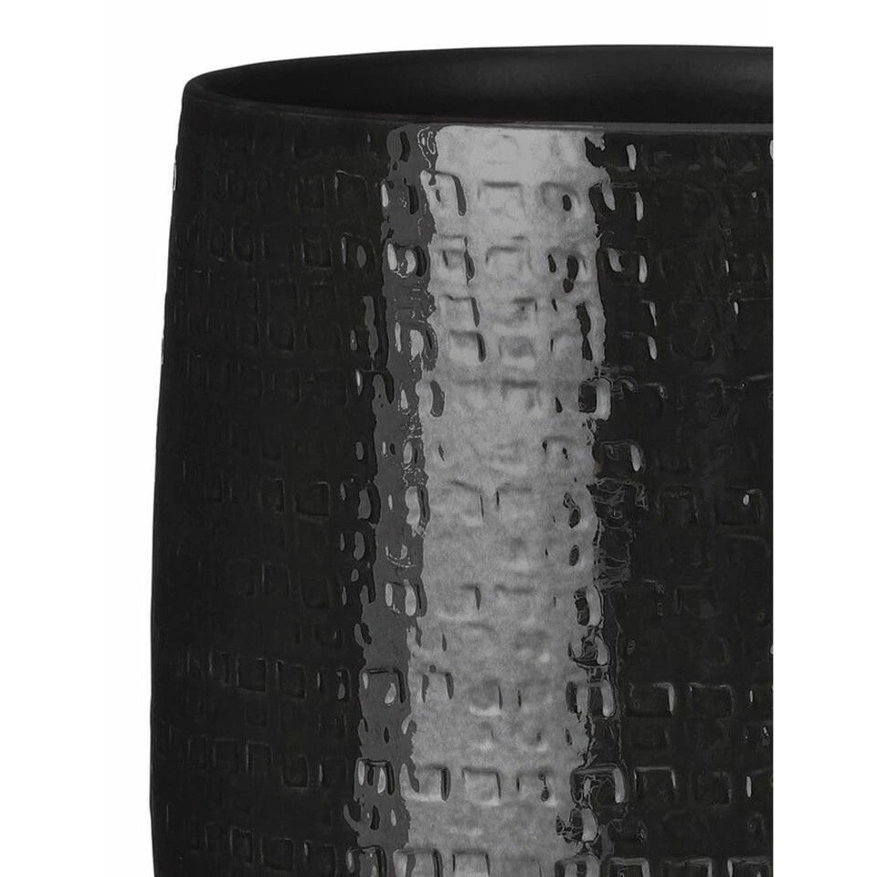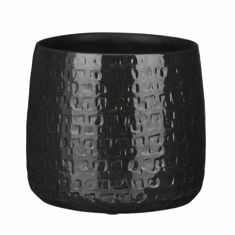 Plantenpot/bloempot van keramiek in de kleur zwart met een mooi relief patroon. Diameter 19 cm en hoogte 17 cm. Stijlvolle bloempotten voor binnen gebruik met een glanzende finish. Serie: Floyd. Het prachtige gedrukte patroon aan de buitenzijde is met de hand gemaakt in Portugal. Derhalve is geen pot exact hetzelfde en hebben de bloempotten een echt karakter.