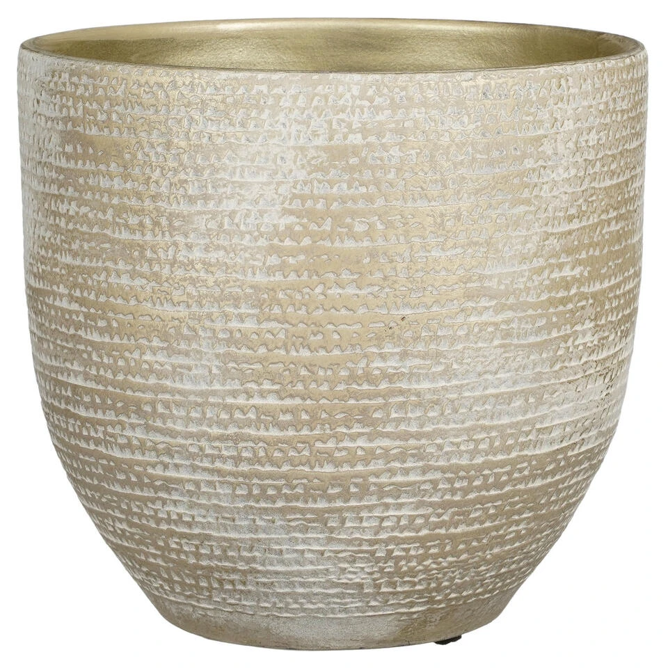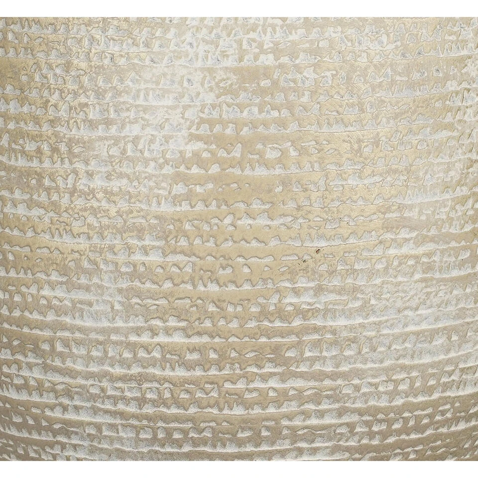 Plantenpot/bloempot van terracotta in de kleur champagne/wit met een modern relief flakes patroon. Diameter 29 cm en hoogte 26 cm. Stijlvolle bloempotten voor binnen gebruik. Serie: Carrie. De zeer mooie potten met prachtige buitenzijde zijn met de hand gemaakt in Portugal. Derhalve is geen pot exact hetzelfde en hebben de bloempotten een echt karakter. Materiaal: Terracotta. Tip: zet een schotel onder de pot om eventueel lekken tegen te gaan. Potten van steen zijn niet 100% waterdicht.