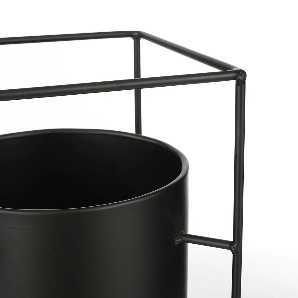 Met de Porte bloempot op standaard uit de collectie van Mica Decorations geef je elke bloem of plant een unieke look. De ronde pot hangt in een rechthoekig frame van metaal, waardoor een leuk lijnenspel ontstaat. Daarnaast zorgt het zwarte metaal voor een stoere, moderne uitstraling die met van alles te combineren is. Kies een plant en creëer jouw eigen combinatie! De afmetingen van het design zijn L26 x B26 x H55 cm, waardoor elke plant mooi van de grond komt. Leuk om te combineren met andere plantenstandaards om een leuk plantenhoekje te creëren!
