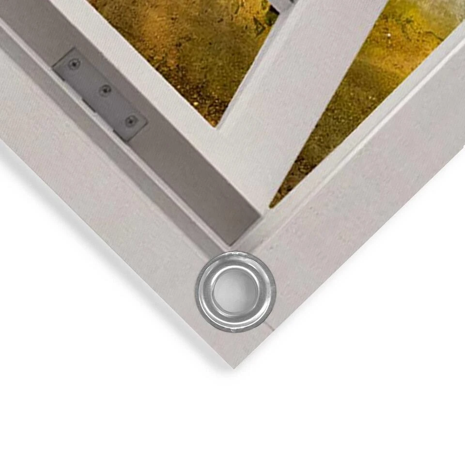 Onze buitenposter is de perfecte aanvulling voor uw tuin, terras of balkon. Deze wanddecoratie maakt van een saaie muur of schutting een echte blikvanger. Tuinposters printen we met een 6-kleuren latex printer op mat polyester canvas. Het doek is daardoor geschikt voor buitengebruik en bestand tegen zonlicht en regen.Je kunt het doek ophangen aan de voorgemonteerde aluminium ogen. Gebruik daarvoor schroeven, spijkers of spanelastieken. (niet meegeleverd). Voor een langere levensduur kan de tuinposter ook buiten onder de veranda of een afdak gehangen worden. De outdoor poster printen we direct na bestelling en wordt binnen 4 werkdagen afgestuurd in een kartonnen doos.Kenmerken