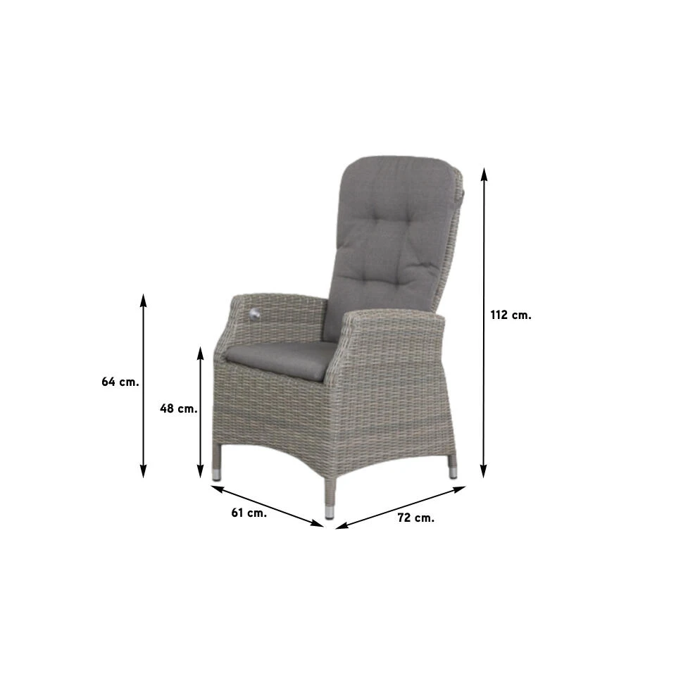 Met deze tuinstoel wordt het pas echt genieten. De Memphis tuinstoel is uniek door de traploos verstelbare rugleuning. Geniet van een heerlijk diner in de Memphis tuinstoel of kom tot rust wanneer je de rugleuning in ligpositie versteld. De Memphis tuinstoel kan perfect gecombineerd worden bij diverse tuintafels uit onze collectie.
