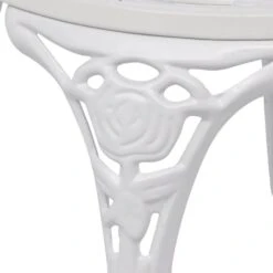 De bistroset is gemaakt van hoogwaardig gegoten aluminium, is weerbestendig en zeer duurzaam. De gietijzeren poten dragen bij aan de stevigheid van de set. Het gedetailleerde bloemenpatroon voegt een vleugje romantiek toe aan elke tuin, patio of serre.