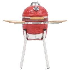 De keramische barbecue heeft een zeer stevig scharnierend deksel met daarop een ventilatieopening en een thermometer. Dankzij de dubbellaagse ventilatieopening kan je zowel de luchtstroom als de temperatuur makkelijk regelen. De twee inklapbare zijplanken geven je een plek om je BBQ-spullen te bewaren. Dankzij het hoogwaardige keramiek met geglazuurde kuiltjes aan de buitenkant is de barbecue zeer sterk en ook nog eens een blikvanger! Ten slotte voegen de roestvrijstalen poten extra stabiliteit toe aan de grill.