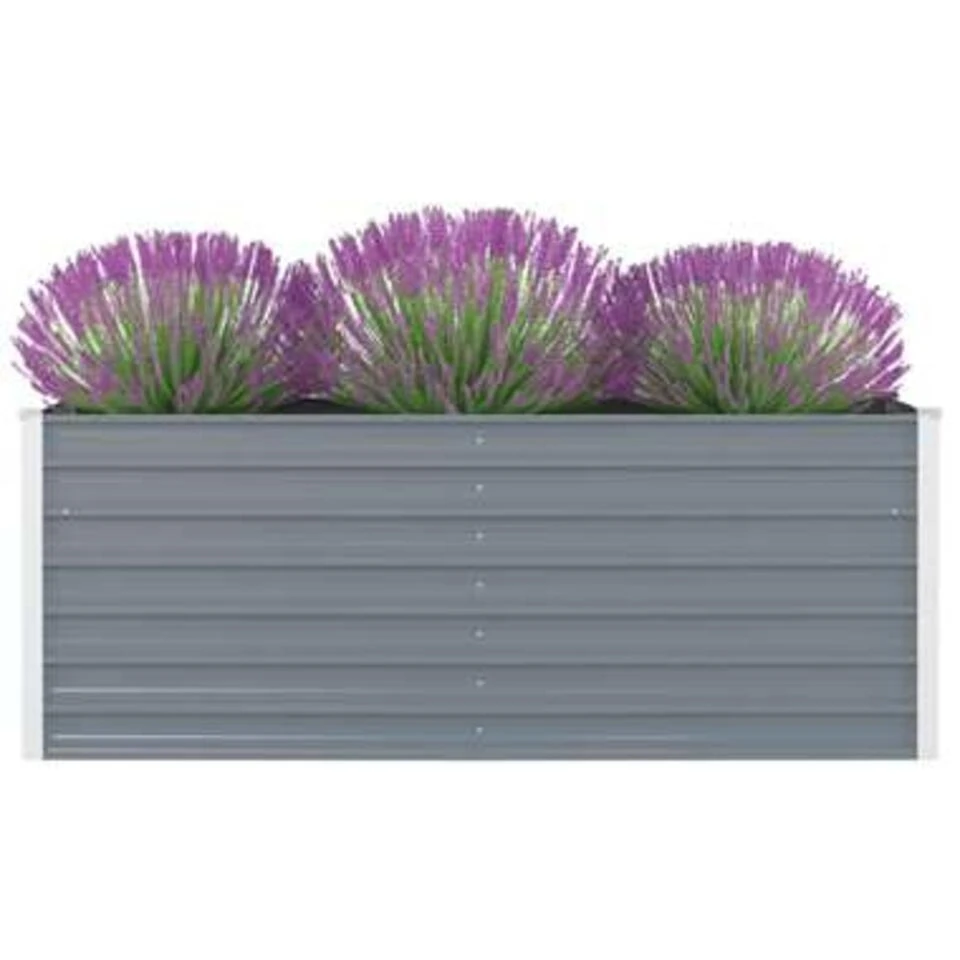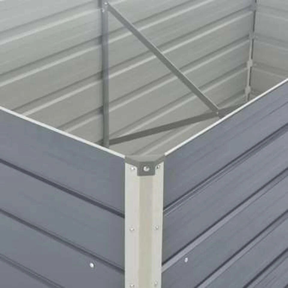 Dit verhoogde tuinbed is erg duurzaam en mooi gemaakt. Hij is diep en wijd genoeg voor een grote hoeveelheid grond en geeft genoeg ruimte voor planten, groenten, kruiden en bloemen. Dankzij het simpele rechthoekige ontwerp zal het een stijlvolle toevoeging zijn aan uw balkon, tuin en patio. Hij is gemaakt van gegalvaniseerd staal en uitgerust met interne steunbeugels, wat hem stevig en duurzaam maakt. De rand van de plantenbak heeft een gevouwen rand zodat er geen scherpe randen zijn.
