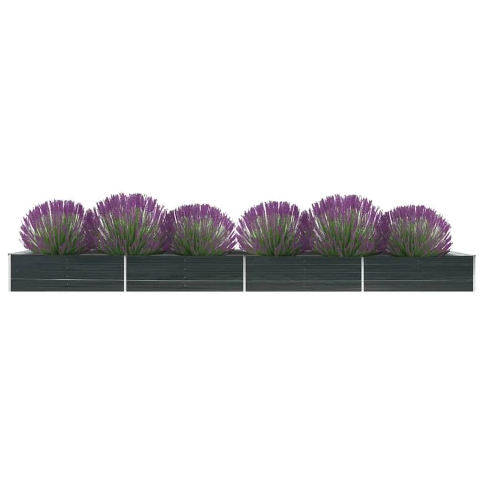 De verhoogde plantenbak is diep en breed genoeg om een grote hoeveelheid grond vast te houden en biedt voldoende ruimte aan planten, groenten, kruiden en bloemen. De bak is gemaakt van robuust gegalvaniseerd staal en is weerbestendig en dus zeer praktisch voor gebruik buitenshuis.