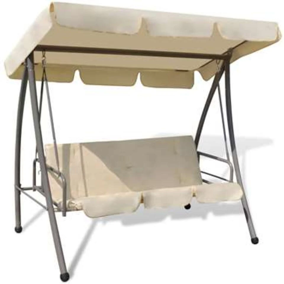 VidaXL Schommelbank Voor Buiten Met Luifel Zandwit - Image 2
