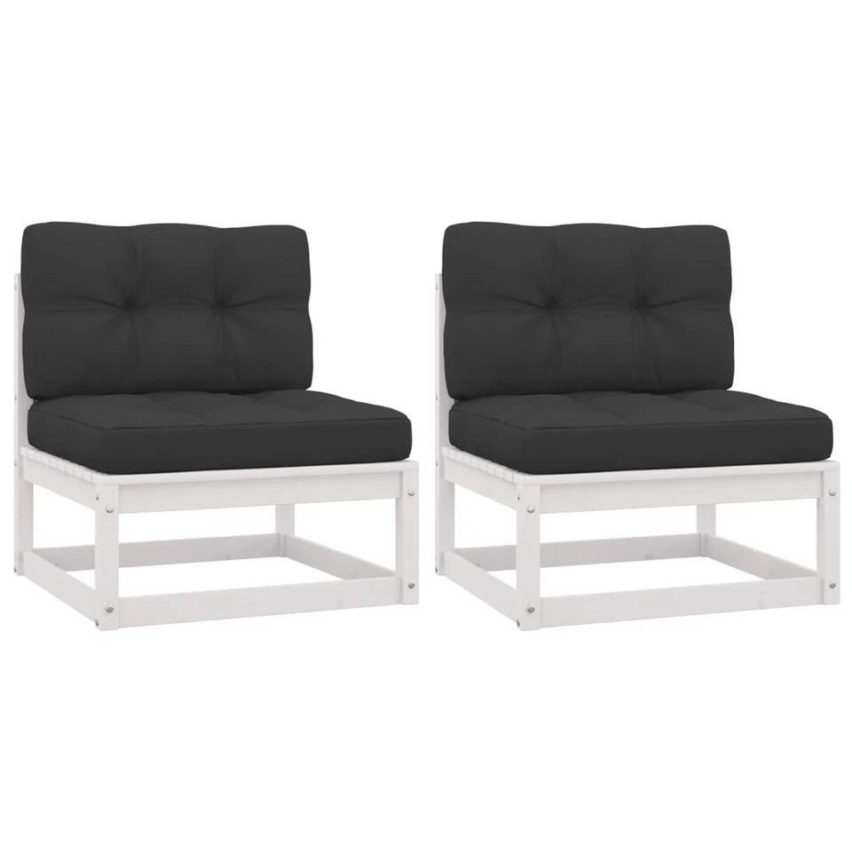 VidaXL Tuinmiddenbanken 2 St Met Antraciete Kussens Massief Grenenhout